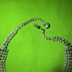 Vintage Sensational 1950’s Carolee 5 Rowed Brilliant Rhinestone Choker Necklace. 14” length. Made of Metal, Rhinestones & Rhodium. In mint condition. All Rhinestones accounted for. Smoke & pet free home.