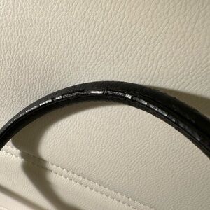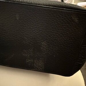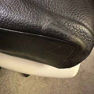 Kate Spade ♠️ black pebbled leather tote. Blk/white striped lining, good condition. A few worn areas on handle, and on bottom. 18w x 11.5h x 6d one large inner pocket, two small inner pockets and one external zip pocket with tassel.
