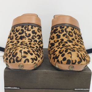 Tommy Hilfiger mules leopard pony hair wooden high heels size 8