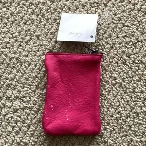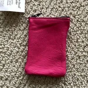 Sharon Duvall Leather Small Hand Carved Genuine Leather Pink Zippered Pouch NWT