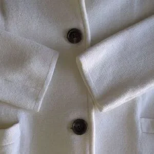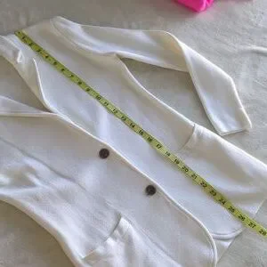 @laura_623 Thank you for such a quick response. In the photos it looks white except the photo of it being worn on someone. Are there any signs of wear; discoloration, pilling, loose buttons, etc.?