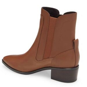 GRAND 360 series Teegan boots in Earth / Dark Brown. Tan leather upper with stretchy elastic panels on the ankle inside. Pointed toe. Side zipper closure. Style #: W24649
