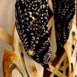 NWT's, this handmade black and white cotton paisley pattern is wrapped and accented by COCO-inspired buttons and snaps, pearls, and other sparkly items. Elegant touches make this headband look and feel designer with intricate patterns & embellishments. All MandolaDesign products are handmade and meticulously etched to perfection, guaranteeing quality and longevity in every piece.