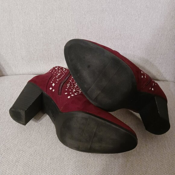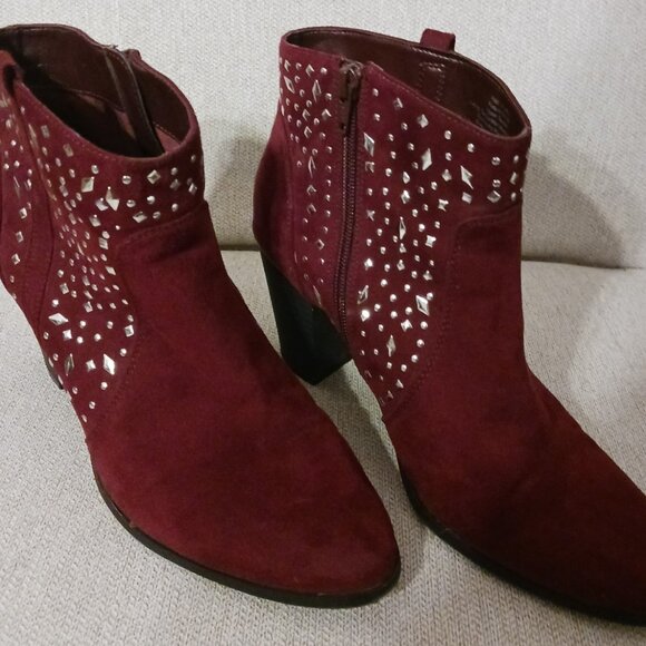 Jennifer Lopez Women's Ankle Boots Size 10 Burgundy Wine Suede & Silver Studs