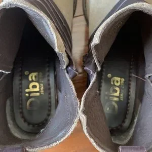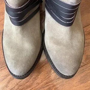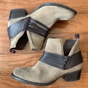 Diba Skyler Split Bootie Slip On Style Leather Suede Taupe & Dark Brown Size 6
