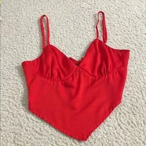 Stylish red crop backless top with adjustable straps.Perfect for casual outings.