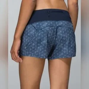 Lululemon Athletica Run Times Navy Printed Mid Rise Lined Athletic Shorts Size 4