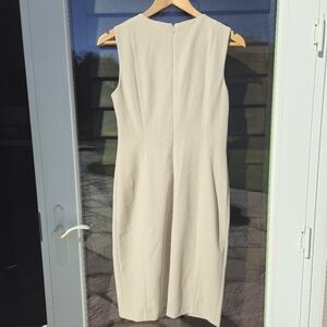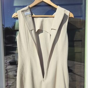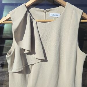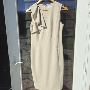 Nude minimalist dress with one shoulder ruffle knee length Calvin Klein Sz 6 021