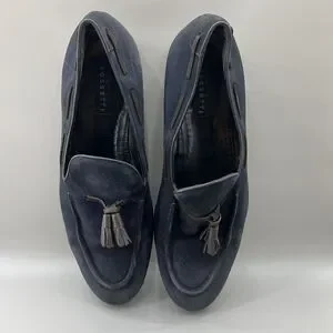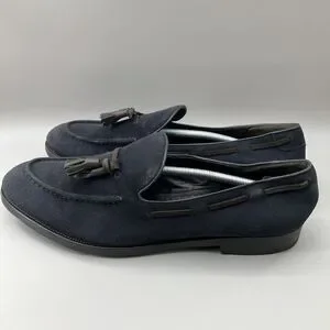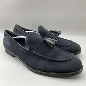 Fratelli Rossetti Brera Men Size 12 Shoes Navy Blue Suede Slip-On Tassel Loafers