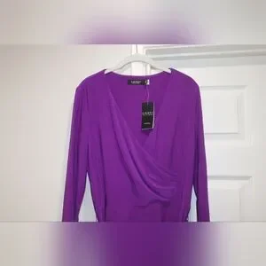 Lauren Ralph Lauren Women's Surplice Jersey Dress, Purple, 10