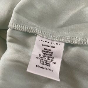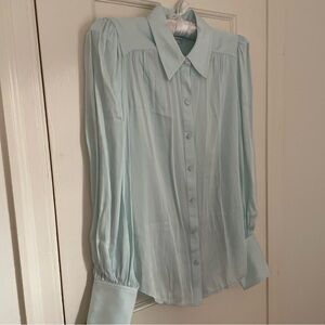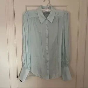 This elegant silk blend blouse from Trina Turk features puff sleeves a buttoned barrel cuff. The fabric has a hint of stretch to it, making this beautiful shirt super comfortable.