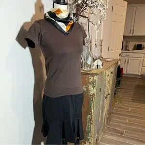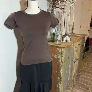 Women’s short sleeved stretch material shirt. Can fit small or a medium. Machine washable.