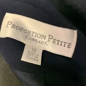 Proportion petite Conrad C ladies jacket in size 12. Made in Canada. 100% polyester. Signs of wear and imperfections show in Picture. Bundle with another items to get the best deal.