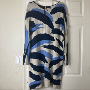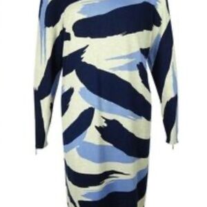 INC International Concepts Sweater Dress Womens Camuflaje Blue Zip Long Sleeve