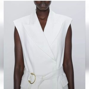 ZARA Long V-neck white vest dress with belt size L