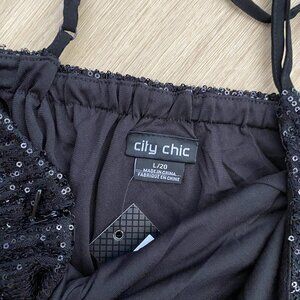 NWT City Chic Womens Savanna Sequin Jumpsuit One Shoulder Black Plus Size L/20