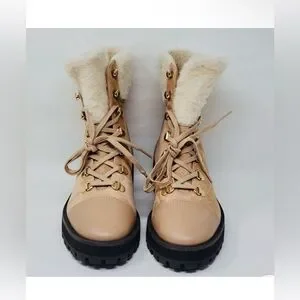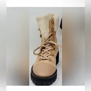 NWT Stuart Weitzman Alpine Leather & Suede Shearling Combat Boots 6.5