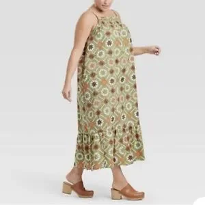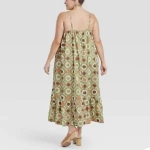 (XXL)- Universal Thread Women's Plus Size Quilted Sleeveless Tiered Dress -Green