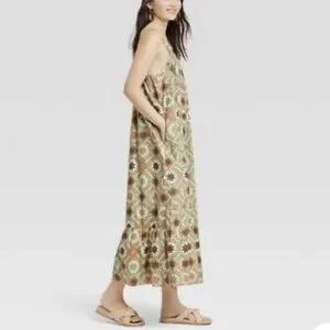 (L)- Universal Thread Women's Plus Size Quilted Sleeveless Tiered Dress -Green