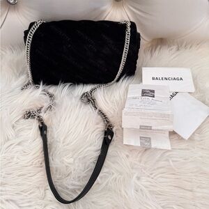 Balenciaga BB Chain Round Shoulder Quilted Velvet Bag
