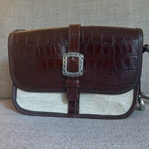 90’s Brighton Crossbody Purse, croc & canvas detailing