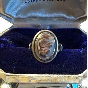 Lovely antique carved trojan cameo sterling silver 925 ring