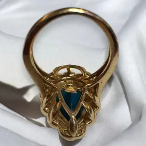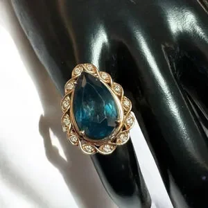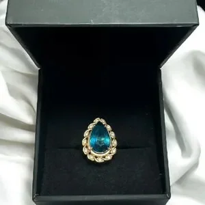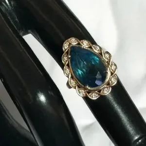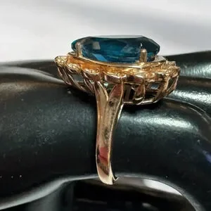 Le Vian 14K Gold Pear Shaped Natural Blue Topaz and Diamonds Ring, Size 5. From Kay Jewelers. Absolutely stunning. You can see some natural inclusions inside the topaz and it just makes me speechless. There are 13 diamonds surrounding the blue topaz.