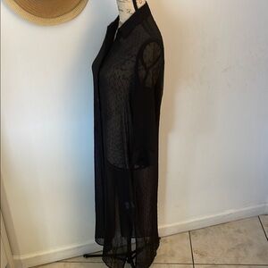 This black button-down shirt from Express is a versatile addition to your wardrobe. Made with high-quality materials, this shirt is perfect for any occasion, dressing up or dressing down but you wiññ sure be the most sexy dressed. I suggest at a black bra and skirt underneath with some cowgirl boots!