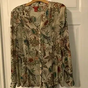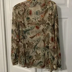 Gorgeous colors in this semi sheer button down 100% silk from Sundance slight tapering gives it a bit of a flounce at hem