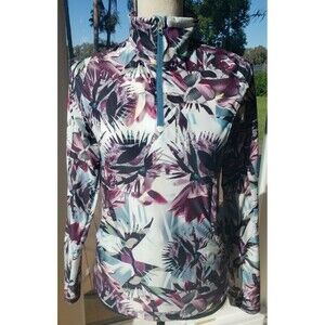 This Obermeyer Youth L (12-14) Mock Neck Half Zip Top Long Sleeve Ski Layer Jacket is a perfect addition to your child's activewear and casual wardrobe. The jacket features a colorful floral pattern, zipper and logo accents, and pockets for convenience. It is made of polyester material and is machine washable for easy care.