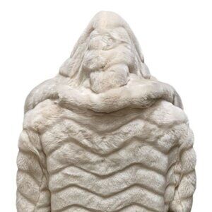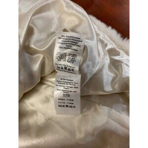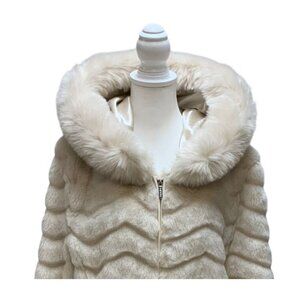 DKNY Womens Faux Fur Chevron Pattern Hooded Parka Coat Ivory Beige Size XL