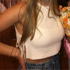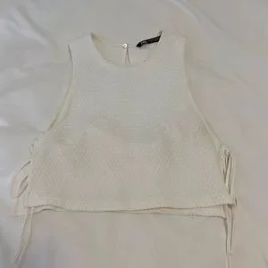 Zara White Crop Top with Built in Bra! -sooo cute -built in bra under high neck crop top -tie sides 1124