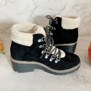 WHITE MOUNTAIN Cliffs Dock Suede Fur Sherpa Shearling Chunky Lug Ankle Booties E