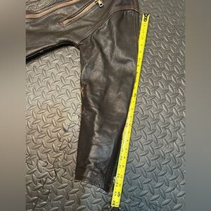 Wonderful, leather jacket, distressed perfection comfortable feel last four years size large if you need the measurements hit me up on the comment section. I’ll get it within 24 hours.