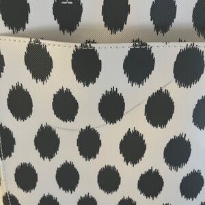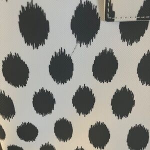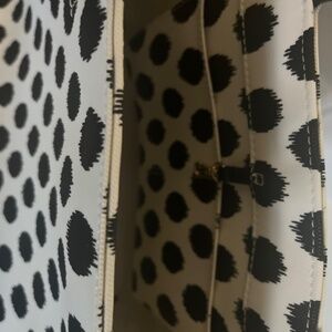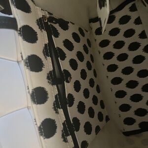 Used Kate Spade Ikat Riley Dot Tote. Bag has an ink mark on front and back. Approximately 11.5 long by 17 wide