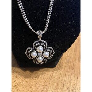 Premier Designs Flower Pendant Necklace Silver Tone Faux Pearl