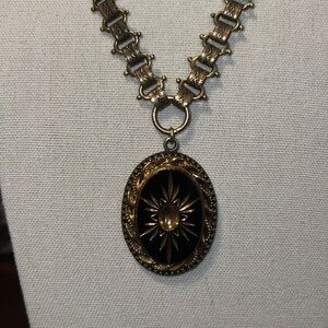 Mark Edge Victorian Gold/Jet Intaglio/Plated Gold Bronze Chain. NWOT