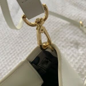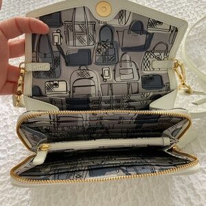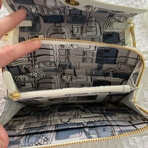 This cute crossbody bag has lots of great compartments. It has an adjustable strap and zip closures. The flap has a magnet closure. Great condition. Only used a few times.