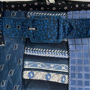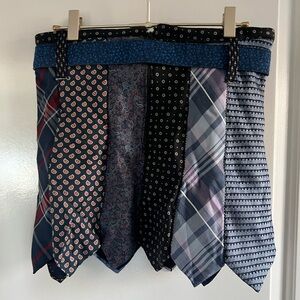 Style: tie skirt, skirt made of ties,, back zipper, belt loops, includes belt, dark colors. Dressy, Fancy, Gothic, Chic, Dark Academia, Wednesday Addams, Goth, Punk, Vampire, Grunge, Mob Wife, Steam Punk, Whimsigoth, mini skit, mini, tie, ties, patchwork, festival, men tie skirt, man tie skirt, preppy, school girl.