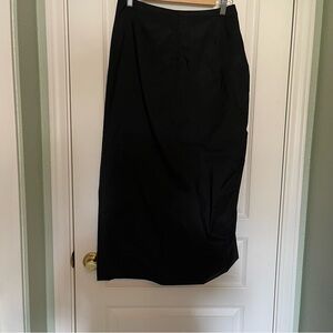 Italian-Made Black Midi-to-Maxi Asymmetrical Skirt with Side Ruching - Size M