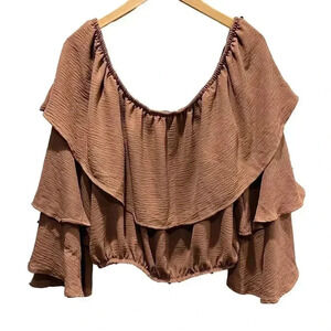 Saints & Hearts Brown Off Shoulder Layered Bell Sleeve Crop Top Medium