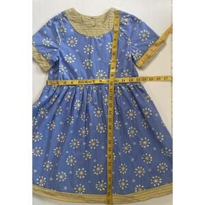 Very Good used condition. Beautiful Vintage CC Bates 100% Cotton dress. Blue with floral print in yellow, peach and lavender colors. Trim Rounded neckline, sleeve hem and hemline in yellow plaid. Flat bodice with pleated skirt. Back buttons with lower snap. No stains, holes or flaws noted. Measurements in pictures. Size 5/6, smoke free home. Vintage sizes vary so please check measurements.