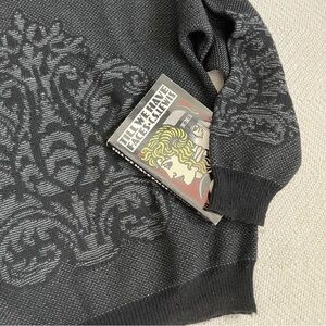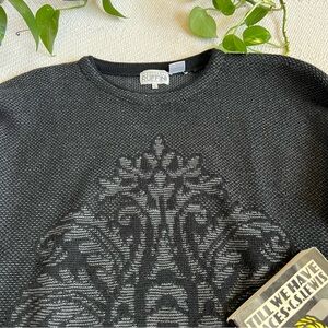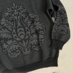 Vintage Wool Intarsia Knit 90s Black Pullover Sweater Large