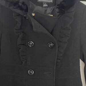 Beautiful Rothschild faux wool dress coat is perfect for the upcoming winter and holiday season. With buttons, ruffles, a cozy and spacious hood, and pockets, this coat will complement your little girl's outfit for any event or party you attend. No rips/tears/stains and from a nonsmoking house, this coat was used very gently.