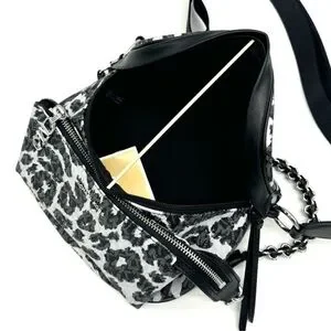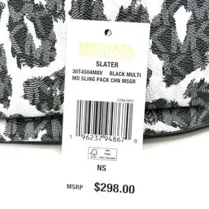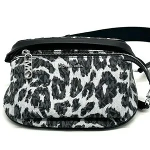 Michael Kors® Slater Medium Sling Pack! Crafted from durable polyvinyl chloride with a sleek polyester lining, this versatile accessory boasts a trendy cheetah distortion MK signature.