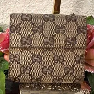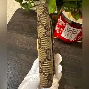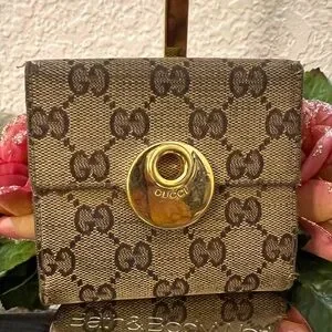 ⭐️Gucci Eclipse Compact Canvass Wallet Gold Tone Hardware 2 Snap Closures