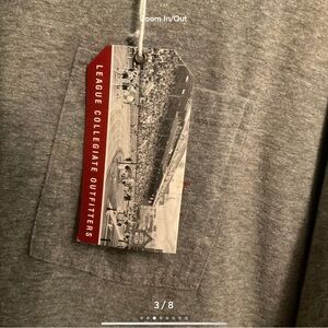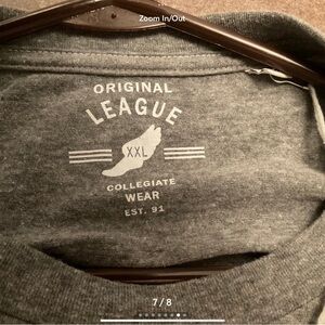 Comfortable gray long sleeve shirt by League. Features a chest pocket with red embroidery.