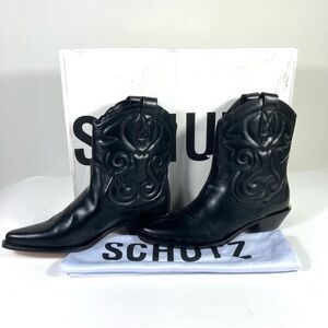 *SOLD* Schutz Zachy Short Western Boots Leather Size 8 Black NEW