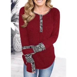 HOST PICK Aztec Burgundy Long Sleeved Henley Top