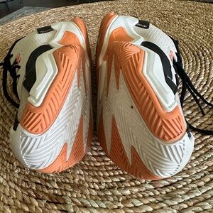 Shoes are in excellent condition the only flaw is the pull loop on the back of the shoes was cut off. Other than that the shoes are in excellent condition.